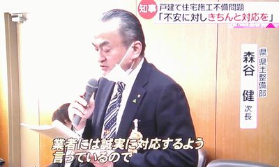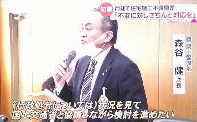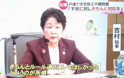 山形市のハウスメーカーで建築基準法に抵触する恐れがある施工不備が発覚し、県内外でおよそ2800棟が調査対象となっている問題について、吉村知事は27日、所有者の不安を解消するよう「きちんと対応していくべき」と述べた。